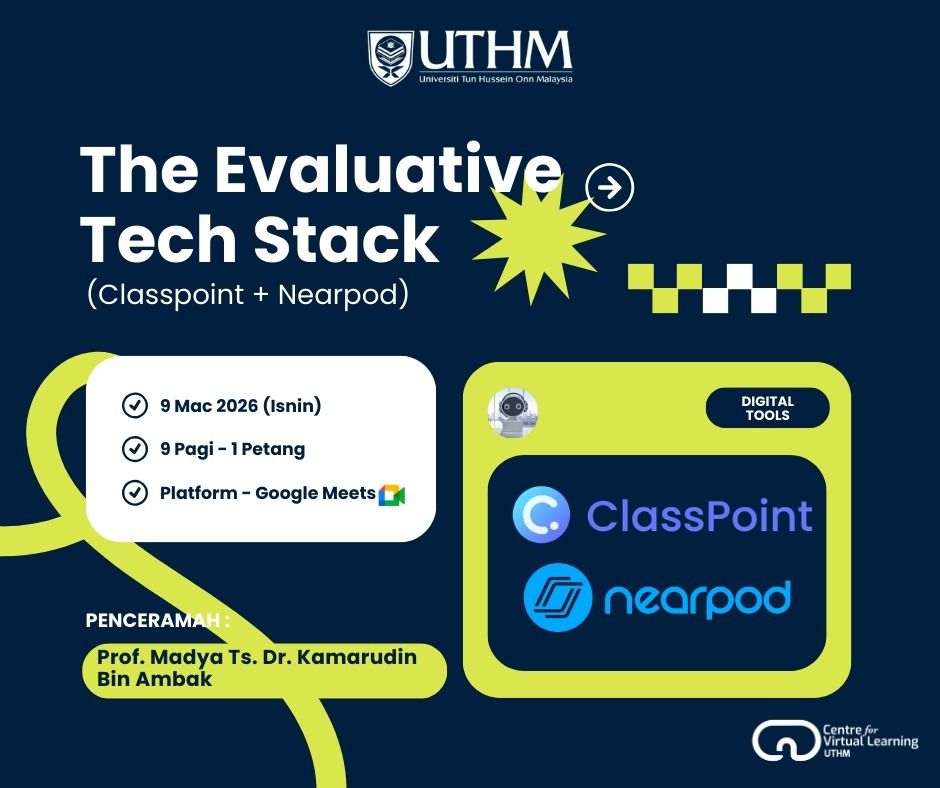 By integrating ClassPoint and Nearpod, Assoc. Prof. Dr. Kamaruddin Ambak (FKMP, UTHM) showcases how to build a powerful "Evaluative Tech Stack" for the modern classroom. The training demonstrates how to convert passive lectures into participatory experiences that encourage meaningful learning and real-time student feedback.