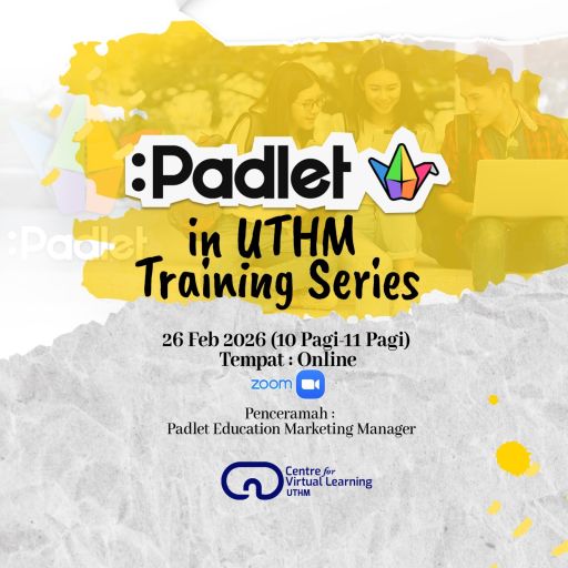 This video is part of the UTHM Training Series on Padlet, conducted on 26th February 2026 and facilitated by Ms. Nadiah Jamal, Padlet Education Marketing Manager. Organised by the Centre for Virtual Learning UTHM, the session highlights the features and applications of Padlet as an interactive platform to enhance teaching and learning. UTHM has subscribed to Padlet for a full year, providing academic staff with access to this powerful tool. All lecturers are encouraged to make full use of the platform to foster greater student engagement and participation in their teaching and learning activities.